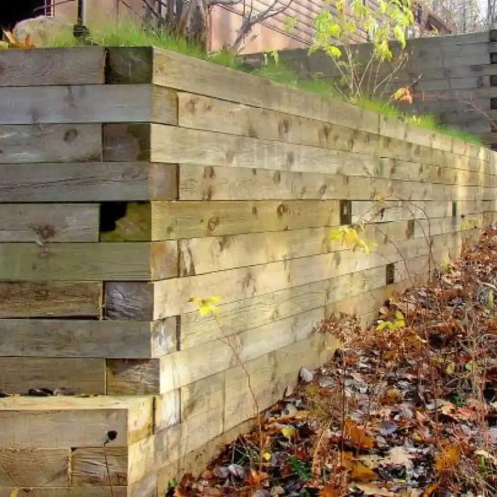 A sleeper retaining wall uses horizontal “sleepers” stacked between posts to hold back soil and shape your yard. They’re especially suited for: